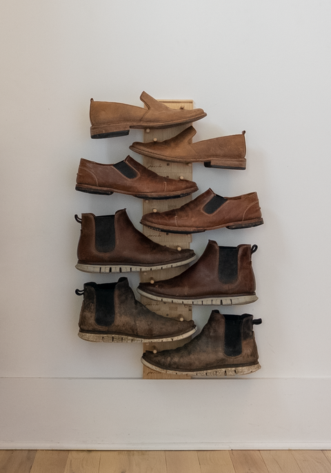 A modular system that puts your shoes on blank wall space, cleaning up the look, cleaning up the floor, making your favorite kicks readily available.